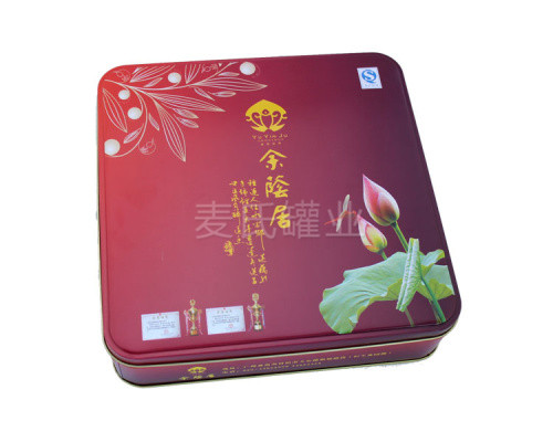 此款大號月餅鐵盒子,結(jié)構(gòu)為三片式天地蓋結(jié)構(gòu),內(nèi)卷線鑼底。印刷為單面四色+1專色處理,罐、身、底均有印刷,外過啞油,內(nèi)過符合國標的食品級金油設(shè)計。其材質(zhì)為國產(chǎn)0.23mm馬口鐵制成,具有優(yōu)異的馬口鐵料,具有優(yōu)異的密封性,防潮性能特點,適合您的月餅產(chǎn)品不易受潮變質(zhì),可適應(yīng)長期運輸流通的包裝要求。