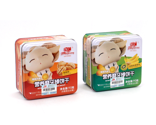 此款嬰幼兒餅干馬口鐵罐,在印刷方面也是經(jīng)過精心設計,鐵罐為蓋、身印刷處理,單面一專+四色印刷處理,外過光油、透明油、珠光油等油墨,內過金油、啞油,為鐵罐內外過上保護膜,可以更好地使鐵罐的外觀在視覺上達到更好的效果。
