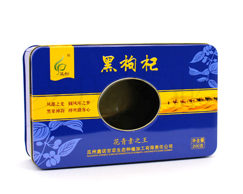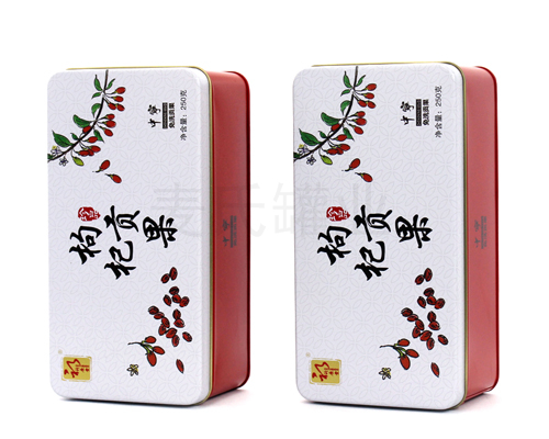 枸杞芽茶鐵盒,寧夏枸杞葉茶馬口鐵盒,采用單面1專色+四色印刷工藝制作,外過(guò)水性亮光油,內(nèi)過(guò)金油油,鐵盒整體為蓋、身、底印刷處理。此款鐵盒為200*90*83mm的規(guī)格尺寸,可包裝720g的枸杞芽茶,可選擇大容量的包裝需求。