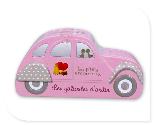 此款汽車形馬口鐵皮盒表面印刷為單面印刷,為CMYK四色+PSM專色處理,鐵盒外觀造型為小汽車形設(shè)計(jì),版面整潔簡單,適合包裝各種精美禮品包裝,優(yōu)雅簡潔的設(shè)計(jì)風(fēng)格,能符合兒童年青時(shí)代包裝的需求。此款馬口鐵盒的版面設(shè)計(jì)稿可由客戶自行設(shè)計(jì)或我司設(shè)計(jì)。