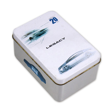 名稱:汽車電源包裝鐵盒 2.規格:130*88*60mm 3.材質:0.23mm鍍錫馬口鐵 4.價格:按照產品規格、定量、印刷和工藝而定 5.印刷:可按客戶要求印刷 6.工藝:可以印刷圖文和LOGO,可以印浮雕,