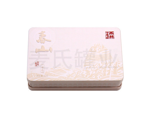 這款七株仙黑茶鐵盒包裝采用0.23mm鍍錫馬口鐵制作,客戶可根據自身需求,選擇0.23-0.28mm的馬口鐵/磨砂鐵制作,而選擇磨砂鐵制作鐵盒可使得材質表面有強烈的沙礫效果,在觸感上會變得更加有感覺。