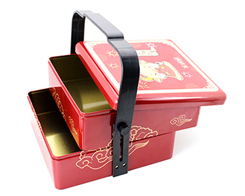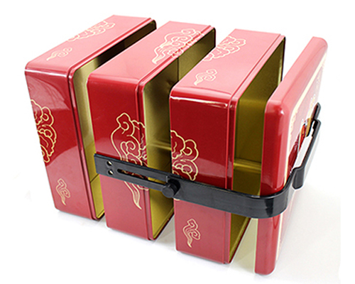 這款三層手腕馬口鐵皮罐的尺寸為270*270*261mm,為了順應多樣化的市場包裝需求,這款食品馬口鐵罐可做成心形、正方形、橢圓形、車形、書本形等異形造型