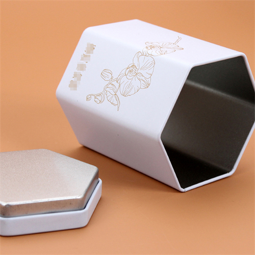 這款通用六邊形馬口鐵茶葉罐包裝采用0.23mm鍍錫馬口鐵制作,客戶可根據自身需求,選擇0.23-0.28mm的馬口鐵/磨砂鐵制作,若選擇磨砂鐵制作鐵罐可使得材質表面有強烈的沙礫效果,在觸感上會變得更加有感覺。
