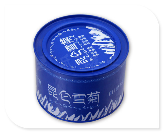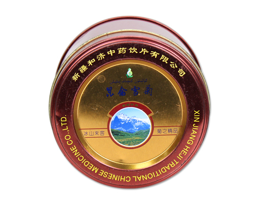 此款圓形昆侖雪菊鐵罐,罐身采用鍍錫馬口鐵制成,平面蓋,身有頸線,鑼底結構,罐身有扣骨,平滑無劃手。可根據鐵罐的設計需求,選擇0.23-0.30mm之間的馬口鐵或磨砂鐵進行訂制,為您多方面提供鐵罐定制需求。